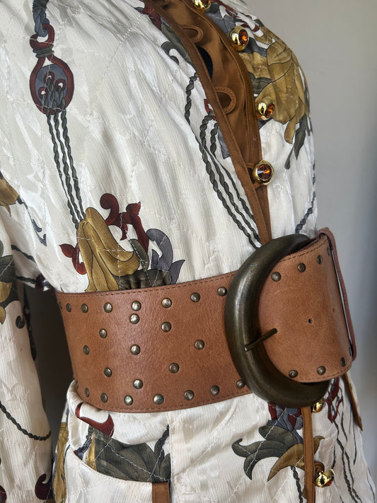 Vintage 1970s Black and Gold Stripe BOHO Shirt and Belt combo