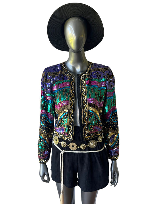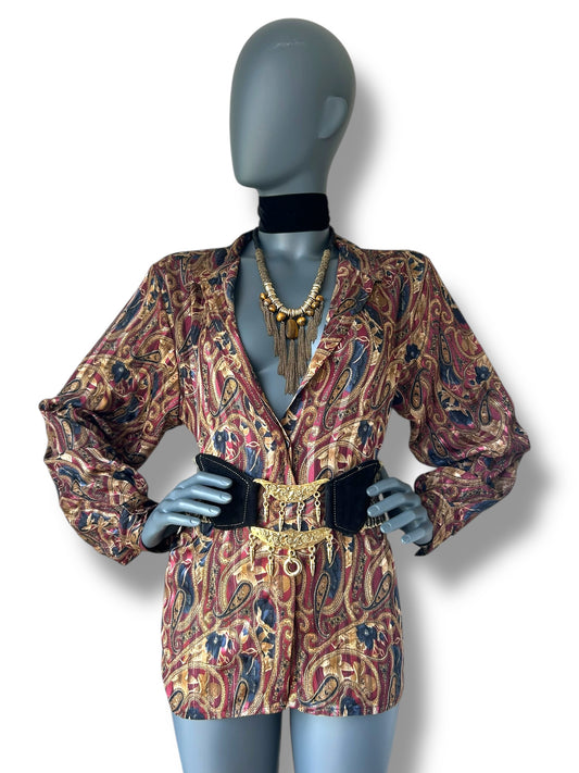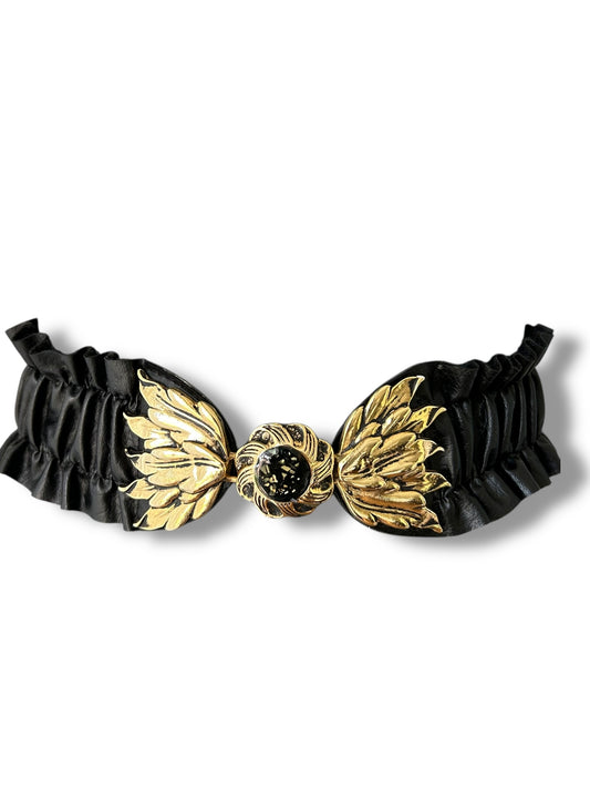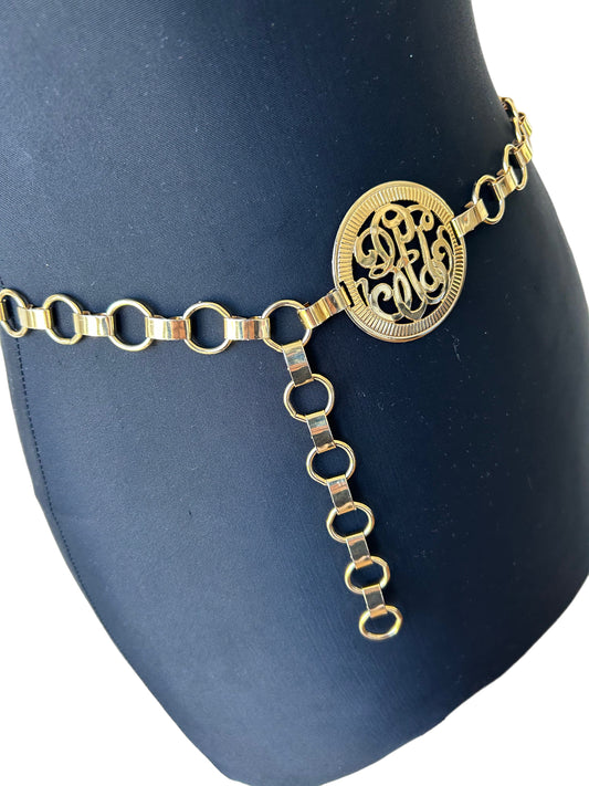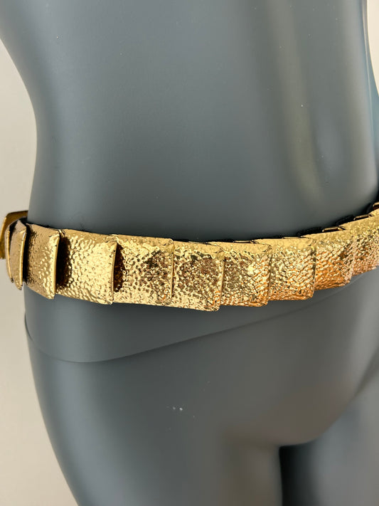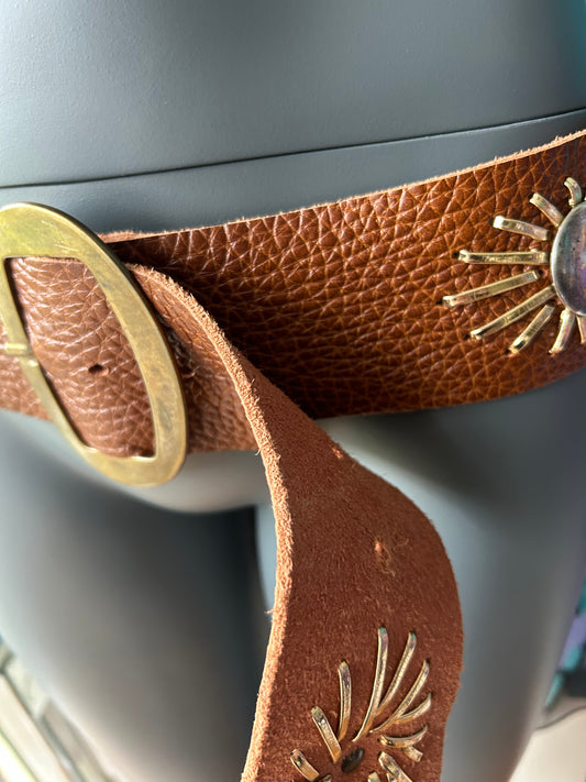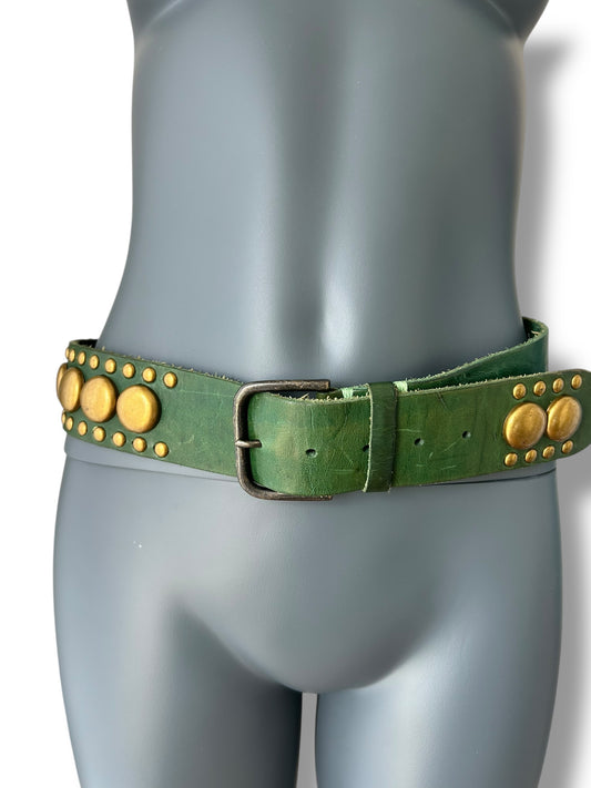 Vintage 1970s Green Leather Belt with Gold Stud Embellishment