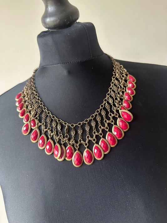 Vintage 1960 Jewel Cabechon Pendent and Chain