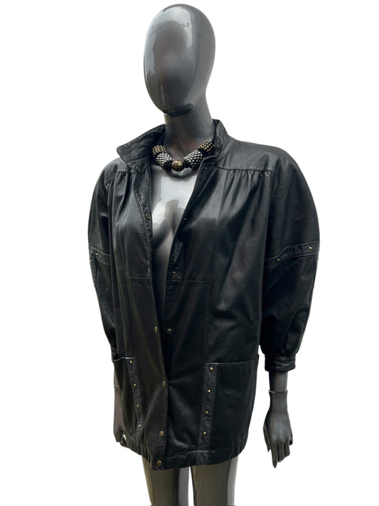 Vintage 80s Black and Gold Stud Italian Leather Jacket