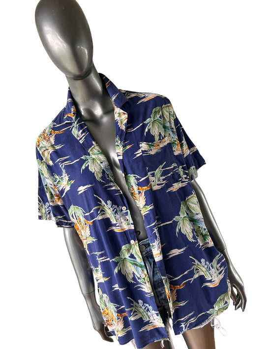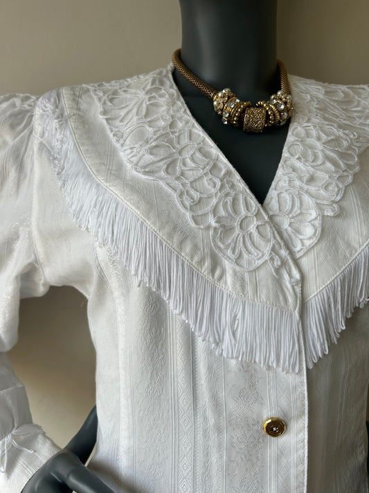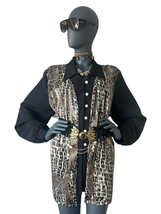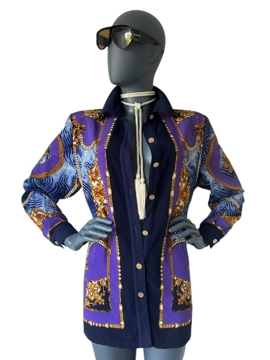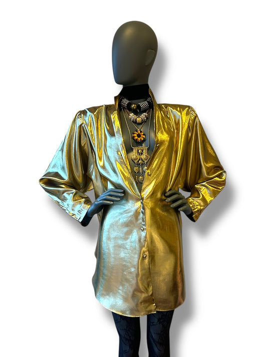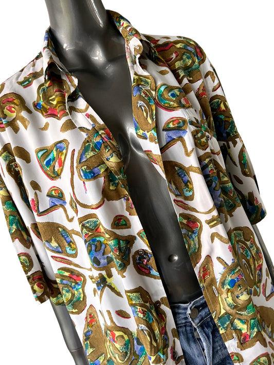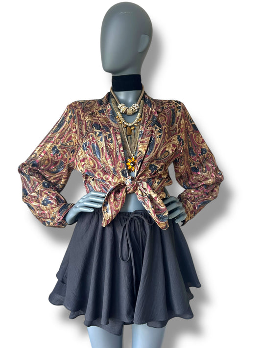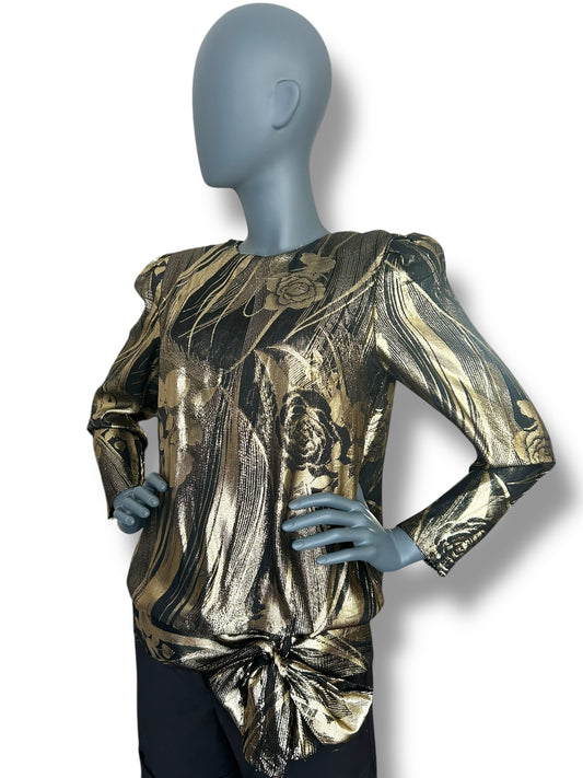 Vintage 1980s Bohemian Print Gold Lame thread blouse.