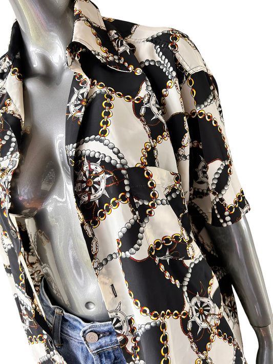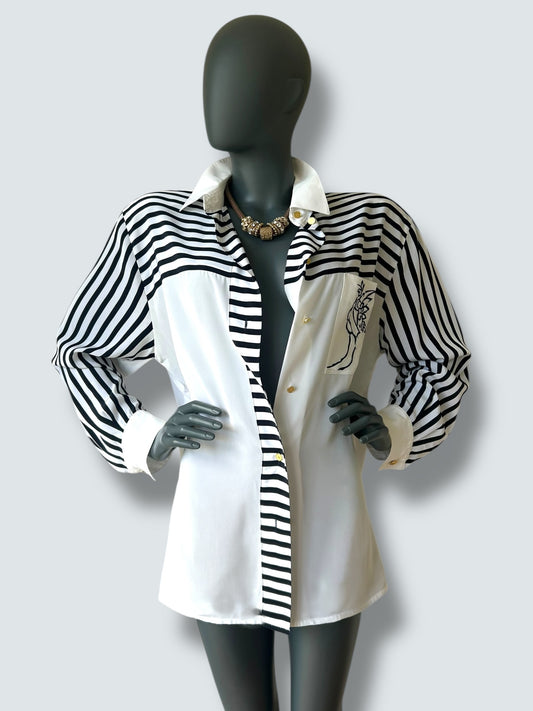 Vintage 1980s Black and Gold Embroidered Jewel Boho Shirt