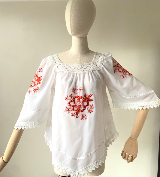 Vintage 1970s's Hungarian Red Embroidered Tunic