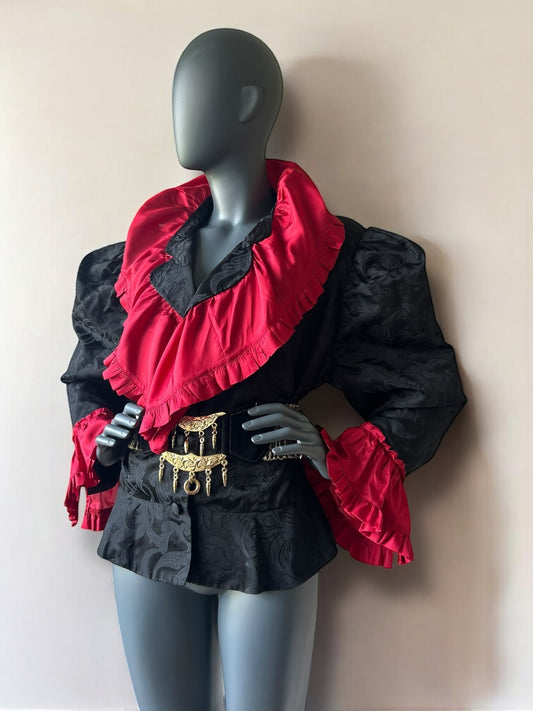 Vintage 1980s New Romantic Silk Jacquard Peplum Jacket